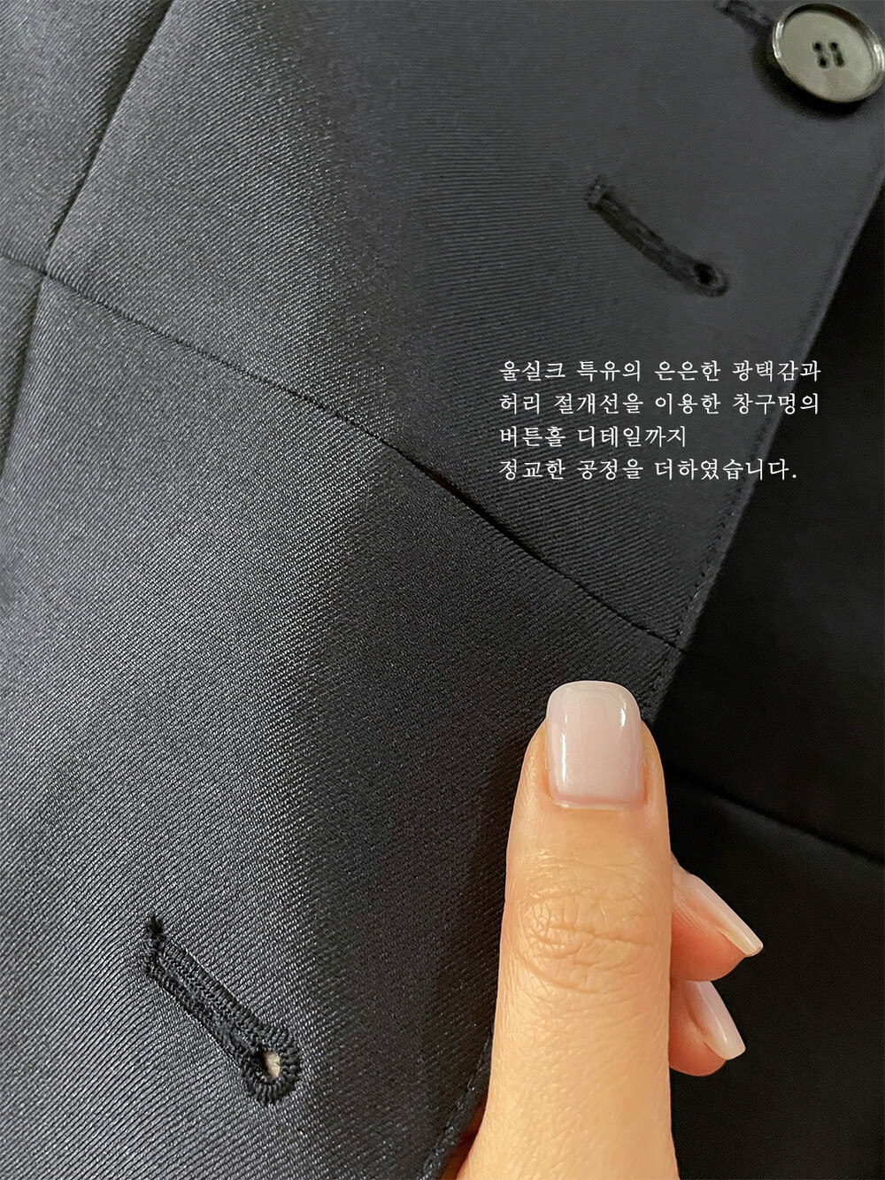 높은 실크함량의 울실크 패브릭 자켓입니다.